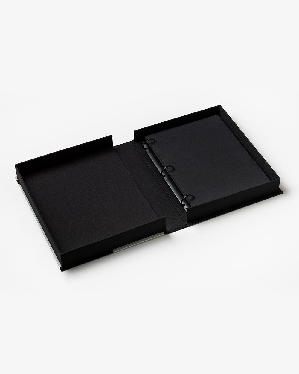 Inni finner du 30 sider med høykvalitets sort fotopapir, som enkelt lar deg feste bilder med fotohjørner eller klistremerker (kjøpes separat). Hver side har plass til to bilder i størrelse 10 x 15 cm, med rom til små notater under.