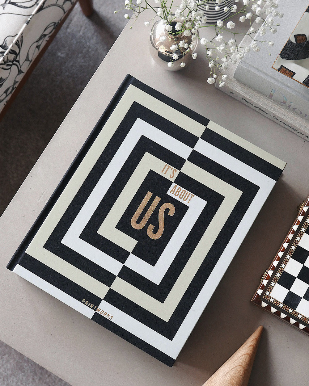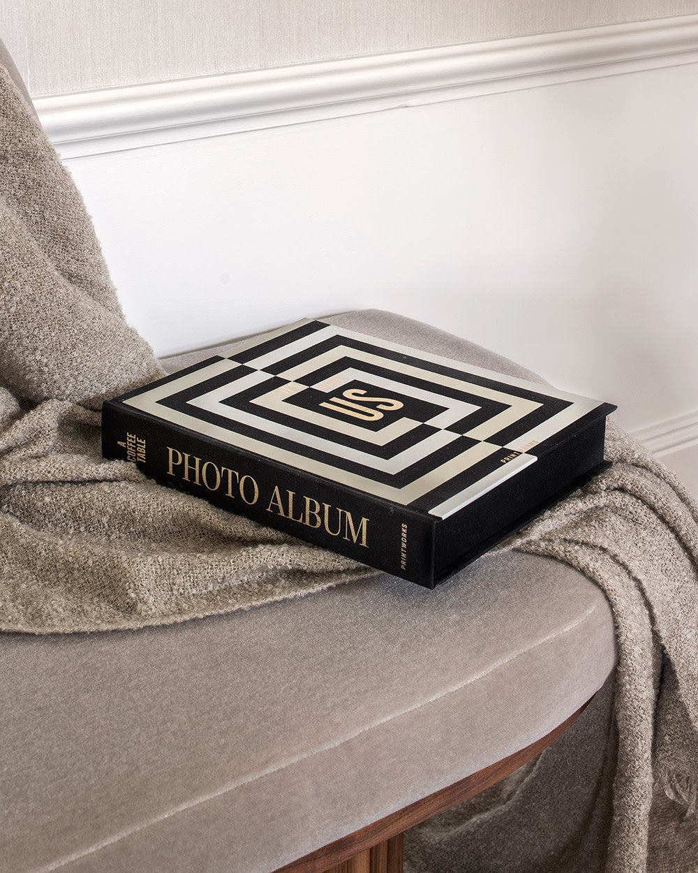 Skap et vakkert hjem for minnene deres med det stilrene "Vårt Kapittel" fotoalbum. Albumet har et tekstilomslag i sort, gull og hvitt med elegante detaljer i gullfolie – perfekt som dekor på stuebordet eller i bokhyllen.